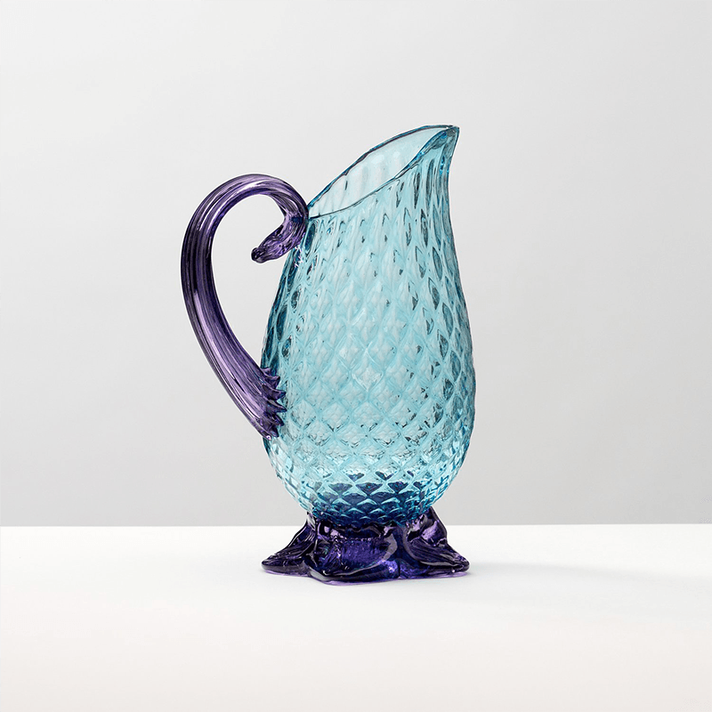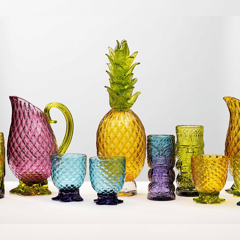 This hand blown glass pineapple-inspired pitcher is sure to warm up any table setting. Long used as a symbol of friendship and hospitality, the pineapple motif evokes a celebratory and welcoming environment. Available in four cheerful colorways.