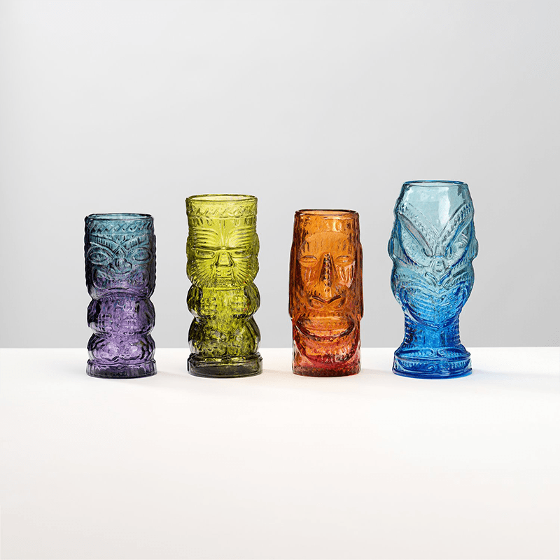 These retro tiki designs are perfect for your next tropical staycation. Available in a vibrant range of island colors.