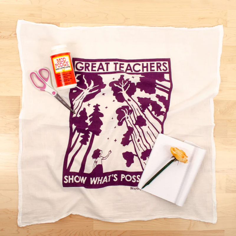 A design that celebrates all the great teachers in our lives! Let's hear it for all the teachers who, despite obstacles, continue to inspire, create new possibilities, and help us see the world differently! We're so lucky to have them in our lives and in the lives of our children. This towel is the perfect way to say "Thank You!" to the special teachers in your world.