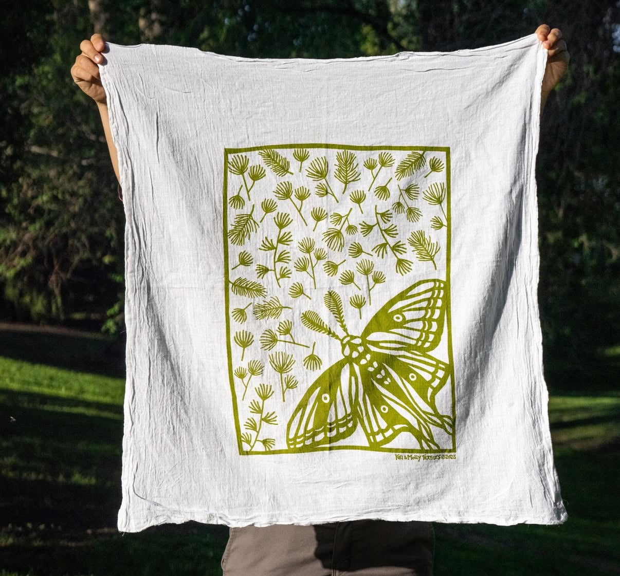 Our Moth towel celebrates the beauty of the Spanish Moon Moth, found in the pine forests of Spain and the French Alps. A rare and protected species, this moth stuns with it's spotted wings and color. We love the symbolism of moths, reminding us to seek light in darkness and to be open to the beauty of transformation.