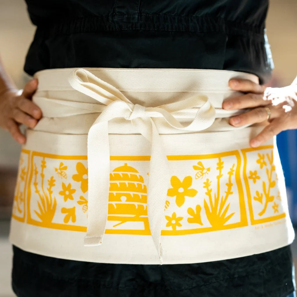 Both functional and versatile, our new 100% cotton canvas waist aprons are perfect for everyone - the gardener, artist, teacher, or market vendor. We love wearing these when we sell at grower's markets and art fairs to hold our cash and market essentials! Each apron has two smaller side pockets (perfectly sized for your cell phone or sunglasses) and a larger central pocket. Cut, sewn, and printed in Albuquerque. Get one for yourself or for a friend!