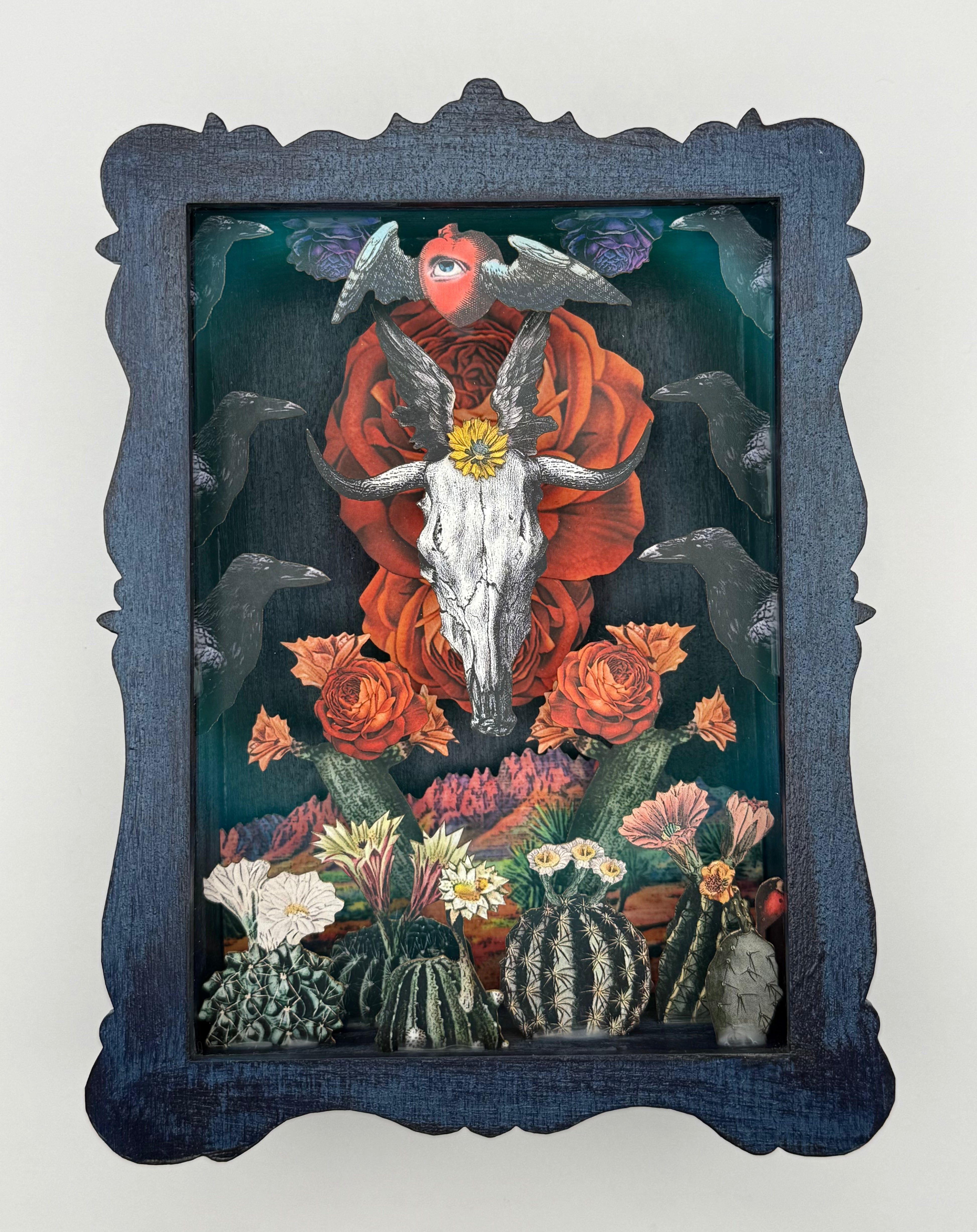 Each of these amazing shadow boxes will contain variations making a unique piece of art. Colors and images may vary from the photo shown but the essence of the piece will be similar. Please contact us directly if you want to see the specific pieces we have in stock.