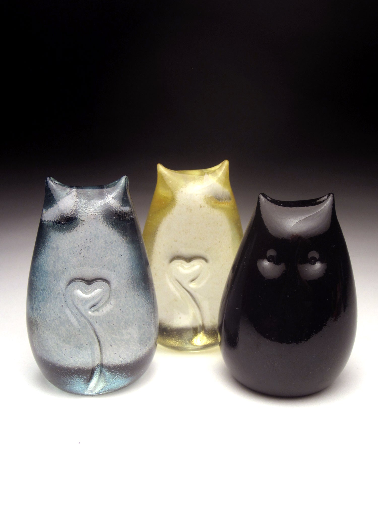 Henrietta Glass is an ever-popular line in our store. Each of these adorable pieces is from the creative mind of artist Jill Davis in Pawtucket, Rhode Island and they are individually had sculpted by Jill and her team. Colvin and Steven fell in love with her work – especially the Love Cats! - and have enjoyed working with Jill for many years. She is one of a very few women working in the commercial glass business and she has been a valuable part of our line since we began. We do warn you – these cute little pieces are addictive – you may find yourself with a flock of birds or a clowder of cats before you know it!