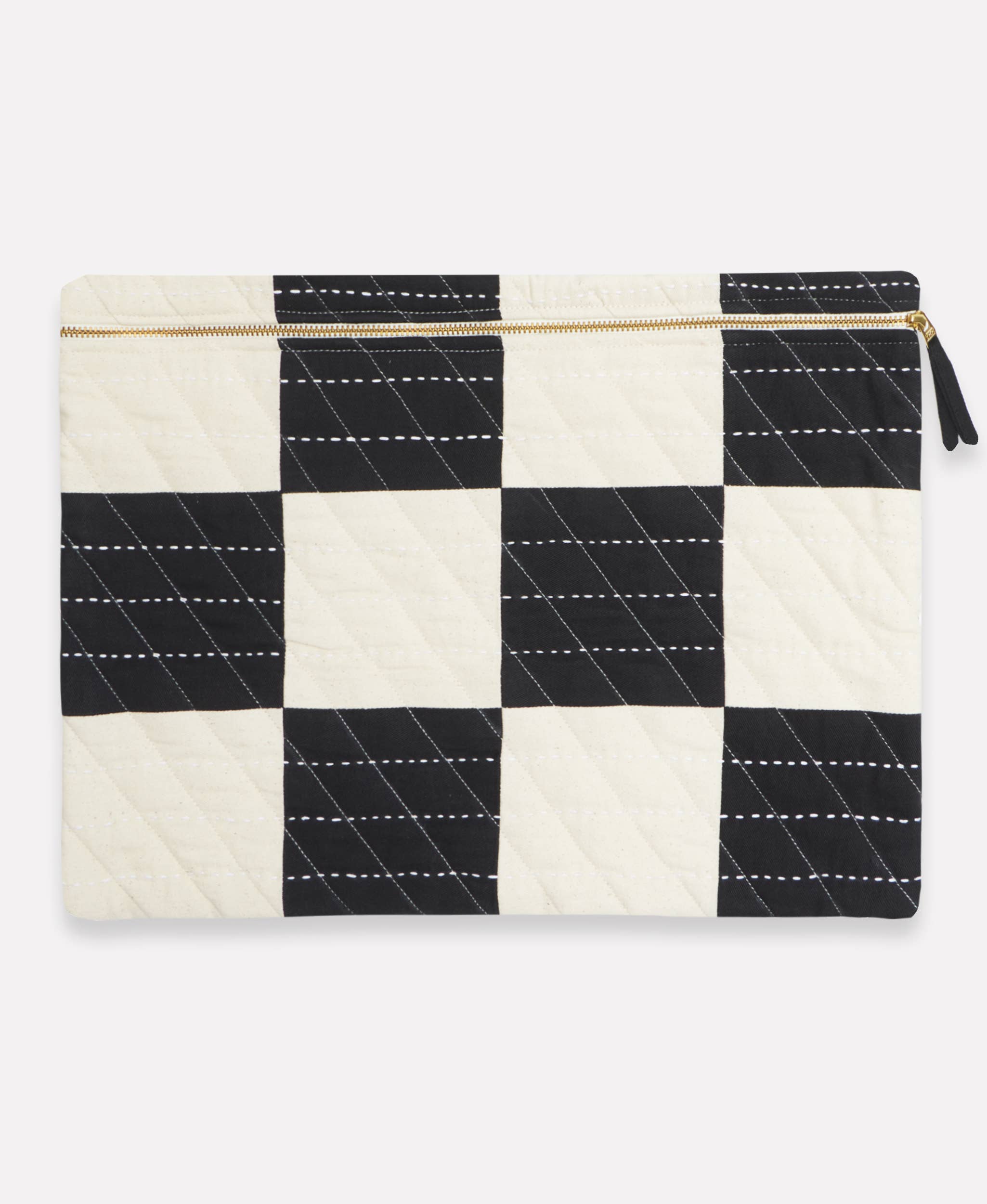 Keep your tech cozy and chic with our quilted laptop sleeve! Made from organic cotton with natural cotton padding, this sleeve offers snug protection in both 14" and 16" sizes. The trendy checkered pattern, topped with playful kantha stitching, brings a fun pop of personality. Perfect for students, professionals, and anyone on the go who wants to carry their laptop in style!