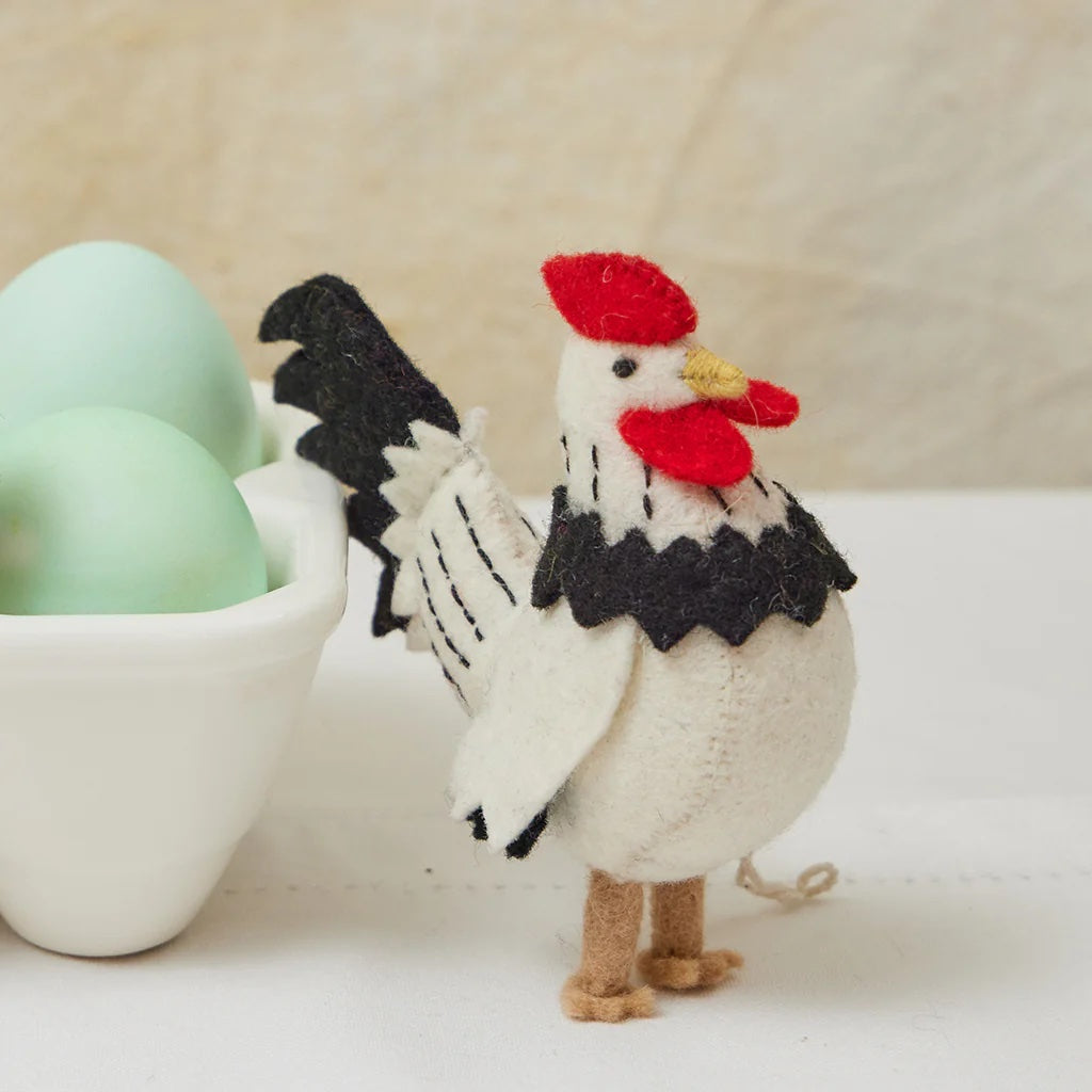 For the king of the roost! This bold poised rooster loves to strut his feathers around the coop. He looks great tucked into an Easter Basket or among freshly dyed Easter eggs - but is also happy hanging as an ornament on your tree! Cute as can be!