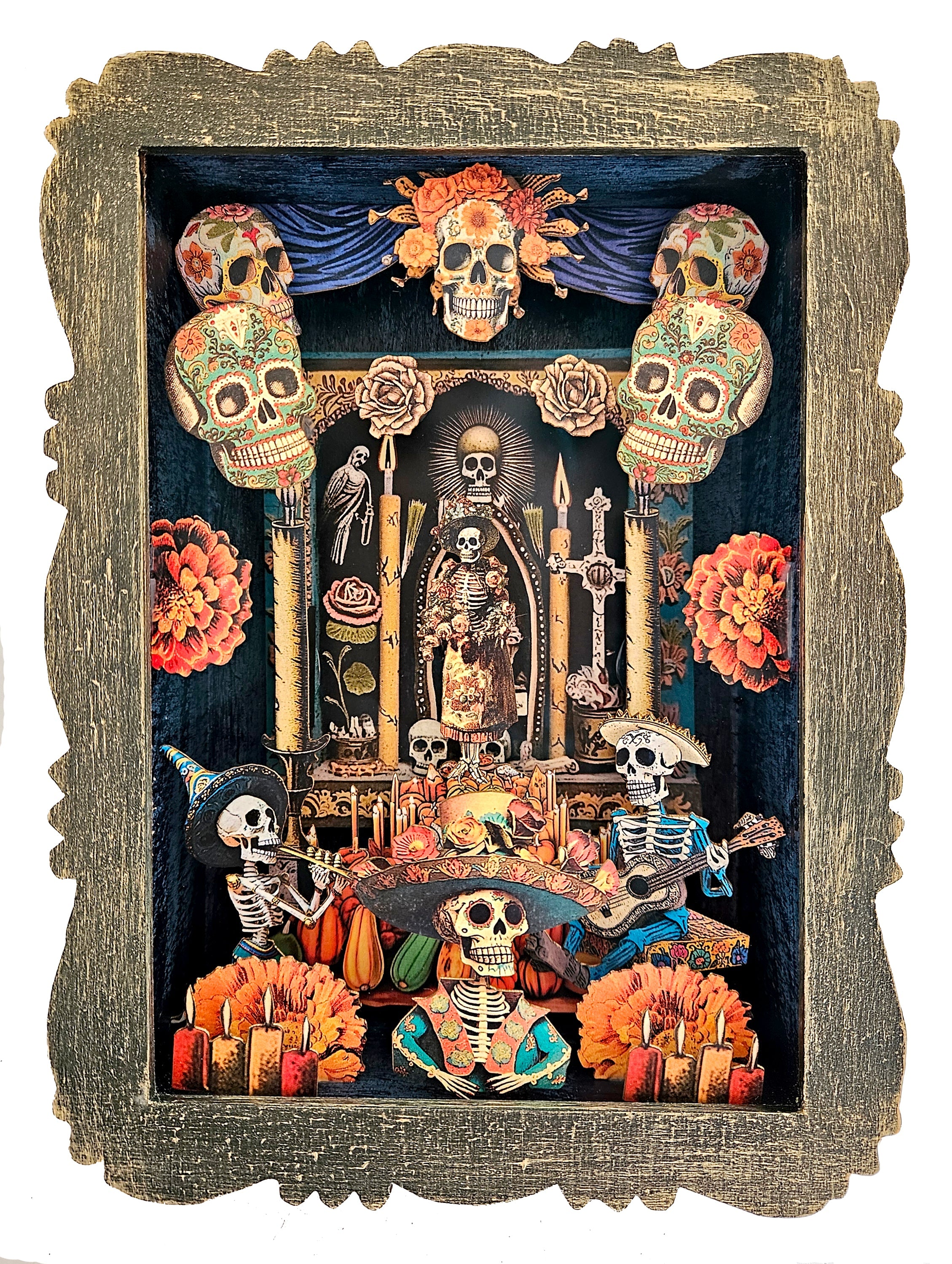 Each of these amazing shadow boxes will contain variations making a unique piece of art. Colors and images may vary from the photo shown but the essence of the piece will be similar. Please contact us directly if you want to see the specific pieces we have in stock.