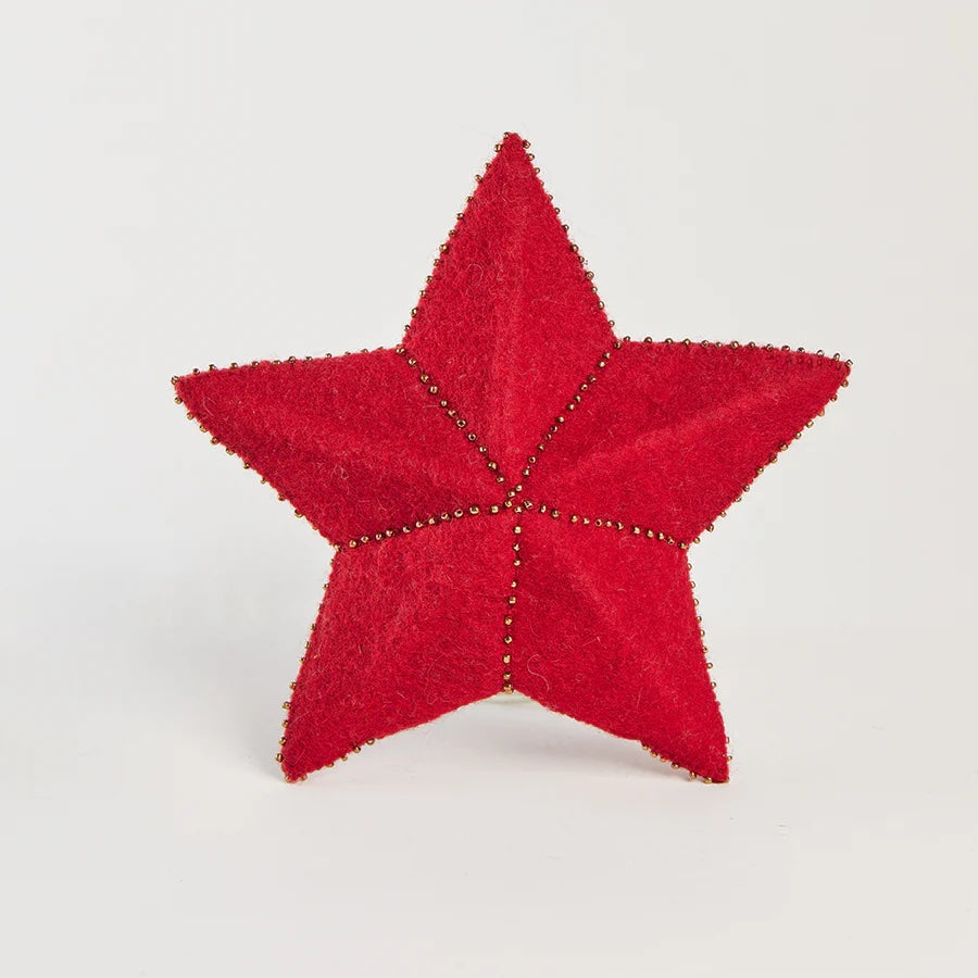 Our gorgeous Red Star Topper brings all the star light and is the perfect finishing touch for your tree. Delicate dark gold beads trim the edges for a finished look. This small size is good for small to medium size trees.
