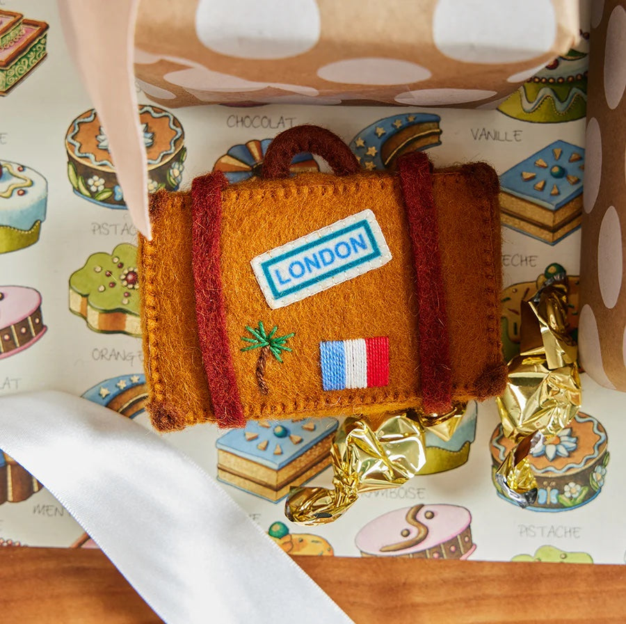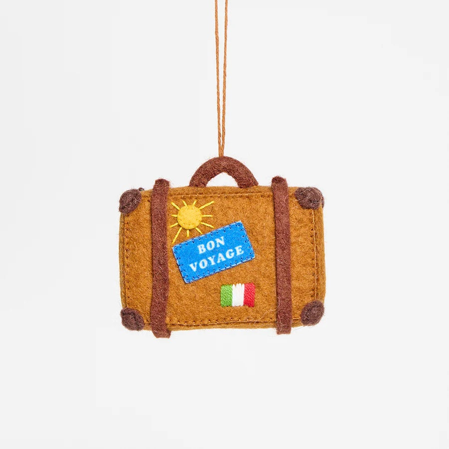 We made this best-selling ornament even cuter! Our suitcase is a lovely gift to commemorate a big journey or plans for a life of travel. Looks lovely hanging on a tree with all its hand embroidered details.