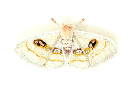 White Spring Moth Brooch Pin